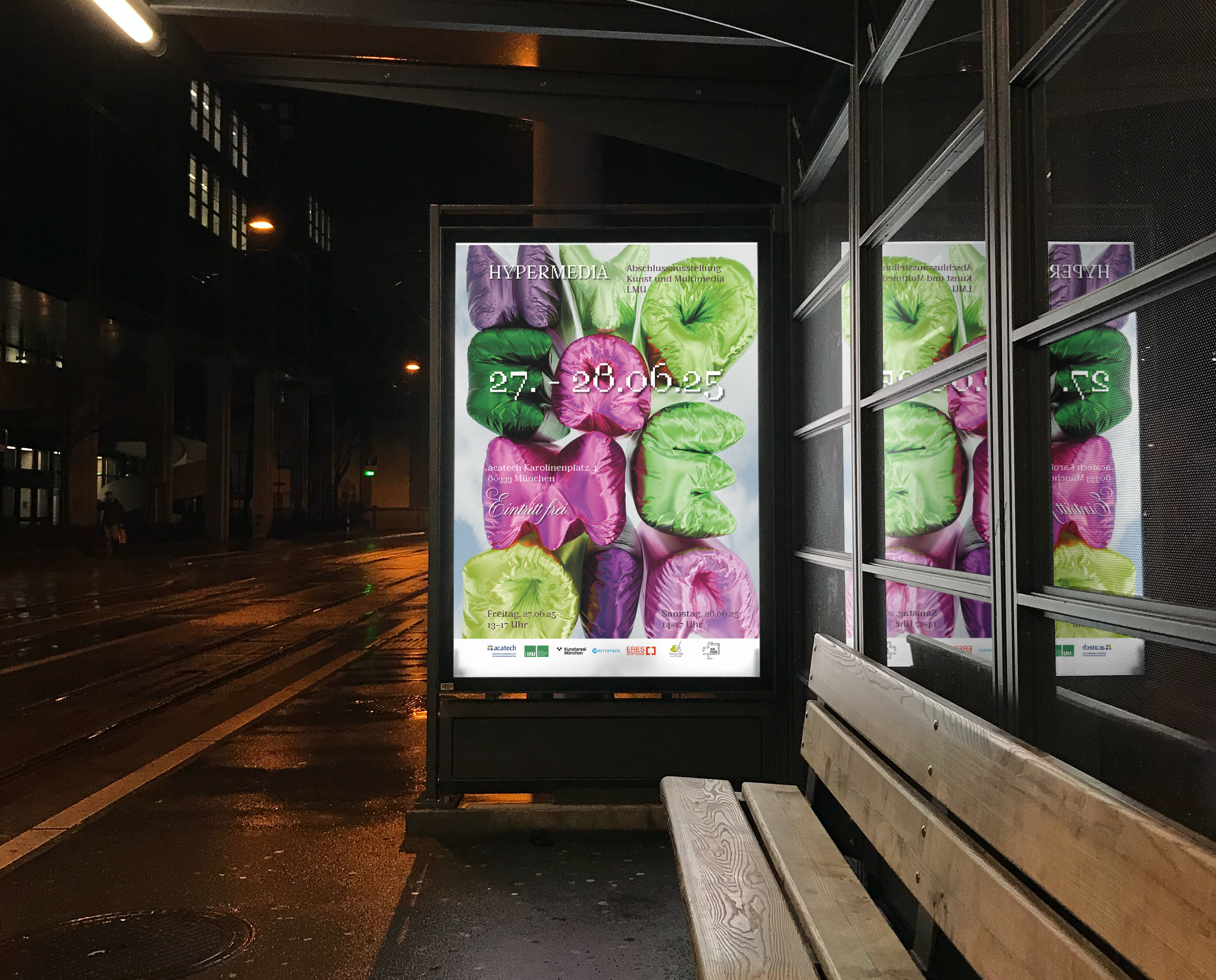 I created a range of visual assets for exhibitions, including posters and social media content. The work combined traditional design methods, such as layout development in InDesign, with experimental approaches like creative coding to reflect the innovative and edgy spirit of the shows. Beyond designing the materials, I also took on a creative direction role, shaping the overall visual identity of the exhibitions.
